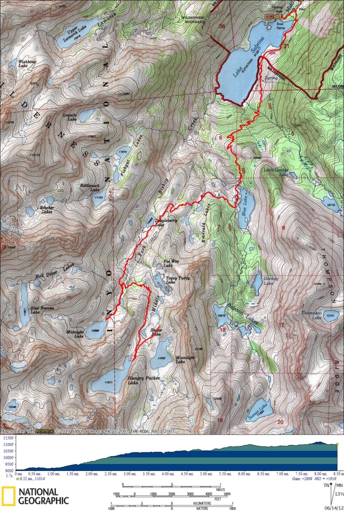 Nice TR. I did pretty much the same trip last August with my dog. Here is a link to a video I made from the trip. Not professional but you will recognize some of the areas. FYI the red mountains are the Piute Crags. I was up in the Wonder Lakes out of North lake the same weekend of your trip and saw practically no one up there either.