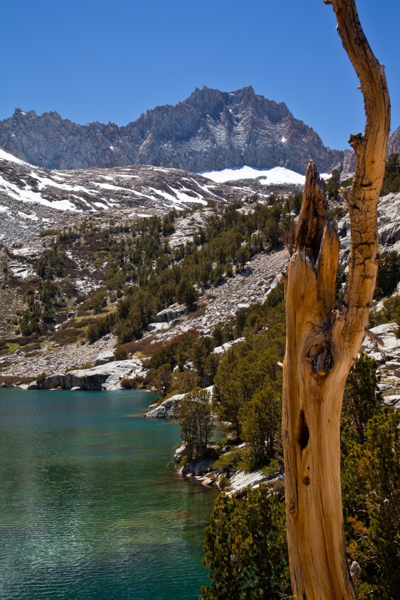Once you arrive at the lake, you are given a great view of the prominent mountains in the area. The backdrop behind the lake quickly rises up to a basin that is surrounded by peaks reaching higher than 13k feet. There is a trail that continues up to this area and hits Baboon and Donkey lakes. It looked very inviting, and I made a mental note to add the trail to my ever growing list of Sierra locations I would like to explore.