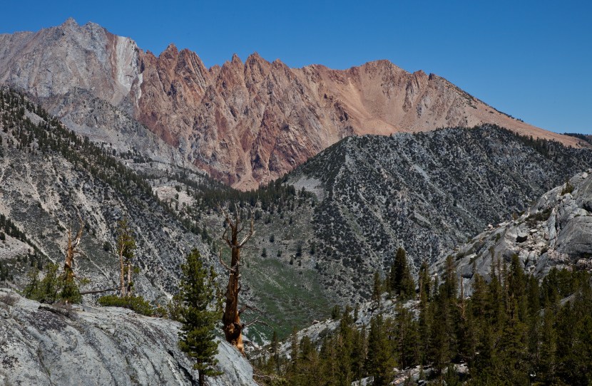 As always, I look forward to the different views you get when hiking a stretch of trail in the opposite direction, and for a brief stretch after Blue Lake there was a great view of the red mountains next to North Lake popping up behind the granite slopes next to Lake Sabrina. The contrast of color and geology was a beautiful sight, and a fitting view to finish the weekend with.