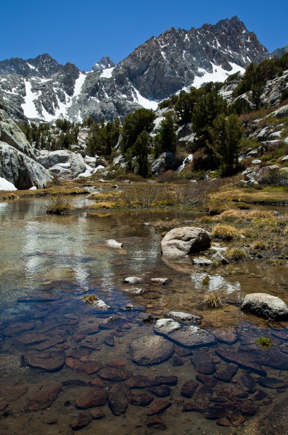 Callie and I went back to the Eastern Sierra for another overnighter this past weekend. This time our destination was the Sabrina Basin, a popular hiking area near Bishop. We were blessed with great weather and a surprising lack of crowds on the trail.