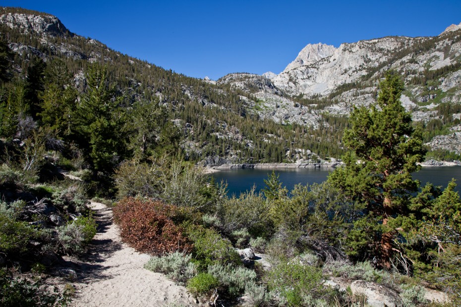 After about a mile of walking along a relatively flat trail next to Lake Sabrina, we passed the trail junction to George Lake at which point the trail began to ascend towards Blue Lake.