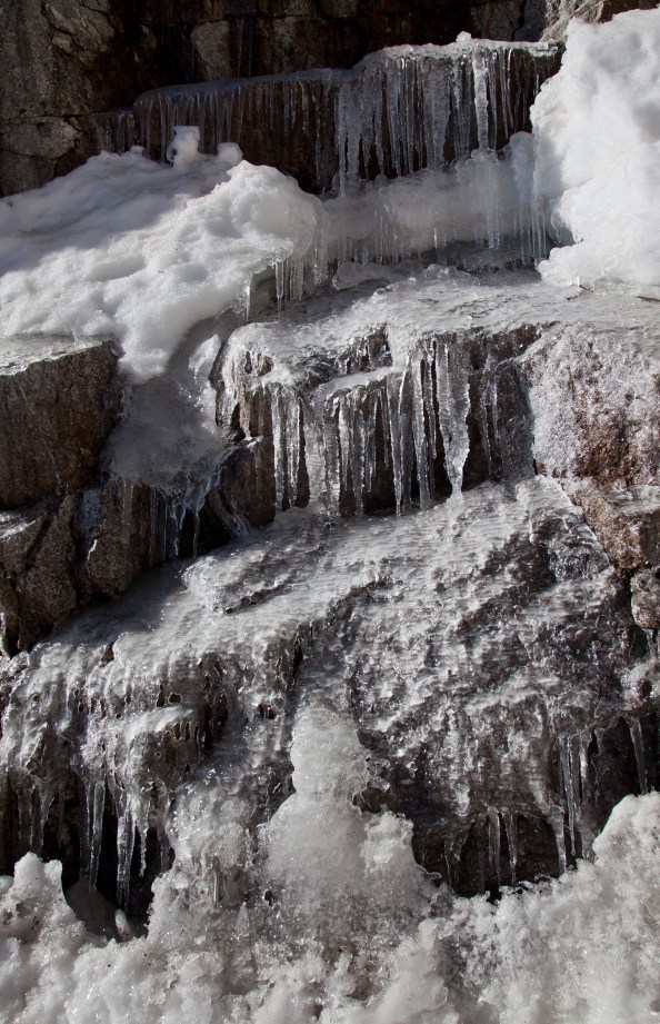 Sections of the trail transformed into frozen streams and there were cool little frozen waterfalls next to the trail. Of course the streams were flowing a few hours later on the return hike.