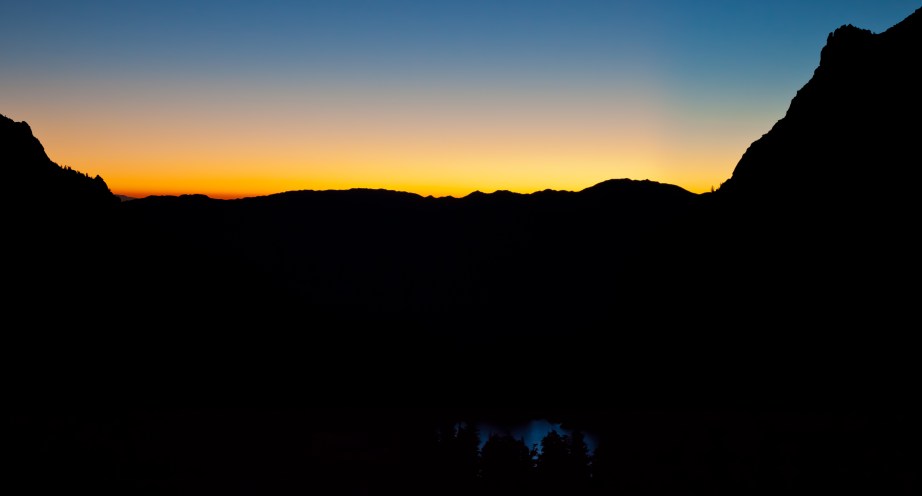 We quickly overtook a group of hikers and then had the trail all to ourselves. On both sides of the canyon, there are nearly vertical faces that rise up thousands of feet. Even in the middle of the night, the black outlines of the ridges could be seen against the backdrop of the celestial sky, appearing as goliaths towering above us from the heavens. Entering this vast wilderness alone in darkness, I was filled with adrenaline and excitement. It felt like we were on a real adventure that defied a simple dayhike in the mountains. This was going to be an experience that would stay with us for some time.