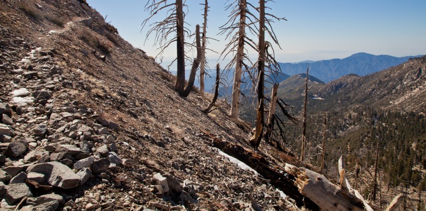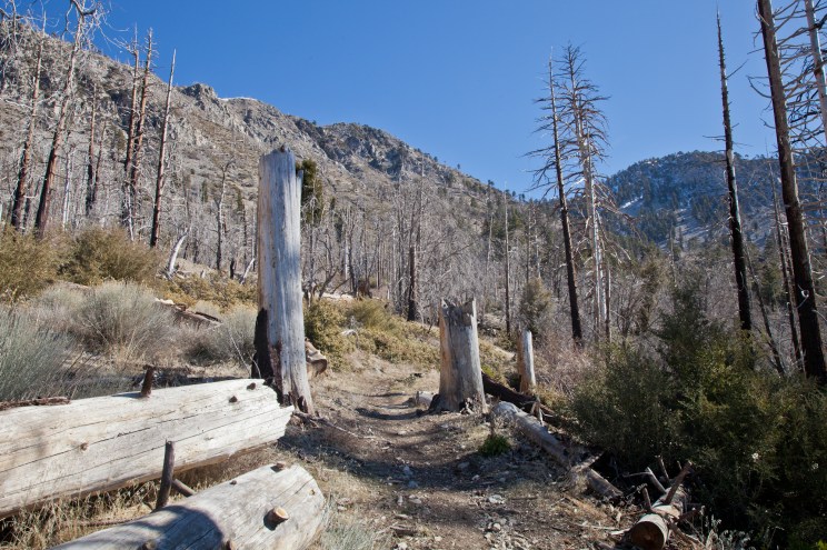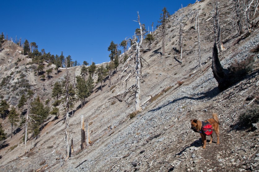 Heading down, we saw only a little snow and many burned trees.