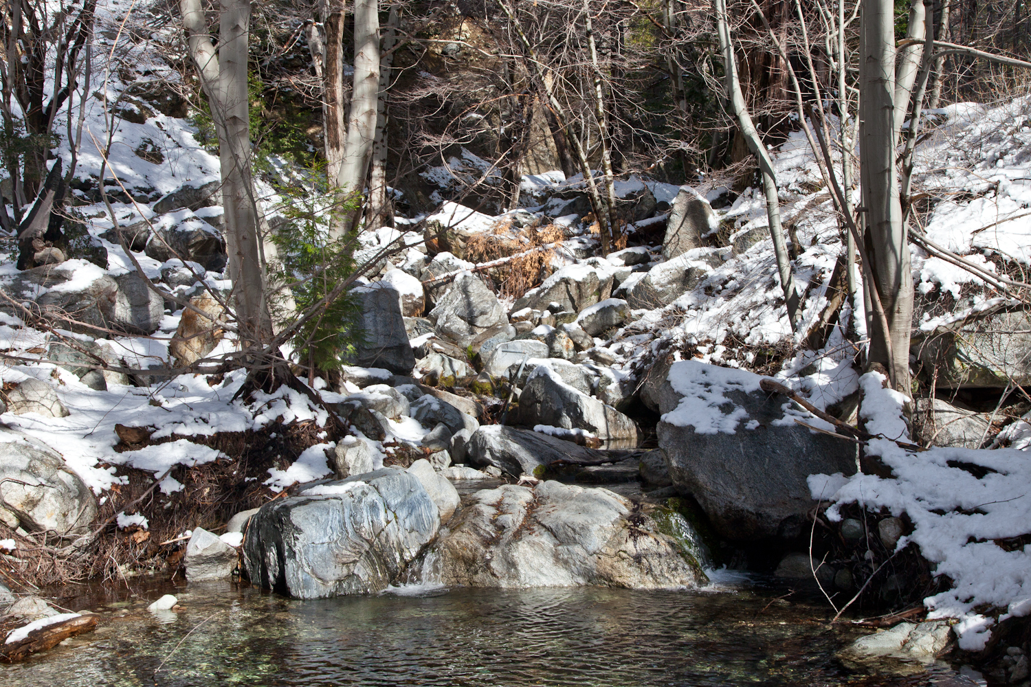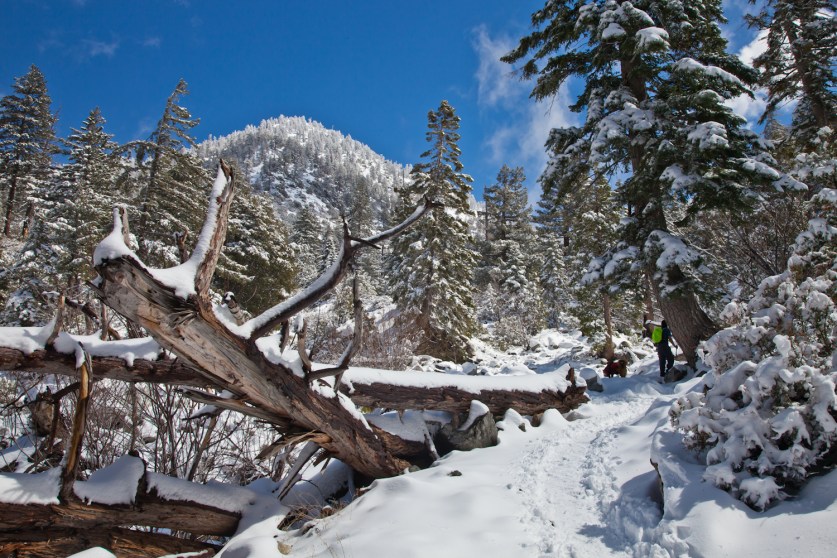Icehouse Canyon is one of the best trails to hike in the San Gabriel Mountains. A few times a year after a heavy winter storm, the landscape transcends into a winter wonderland. Snow capped trees dot the ridges in every direction, and all signs of civilization are gone. Despite the superlative beauty found here on these special days, the trail is usually devoid of the hordes of hikers that frequent here in warmer months.