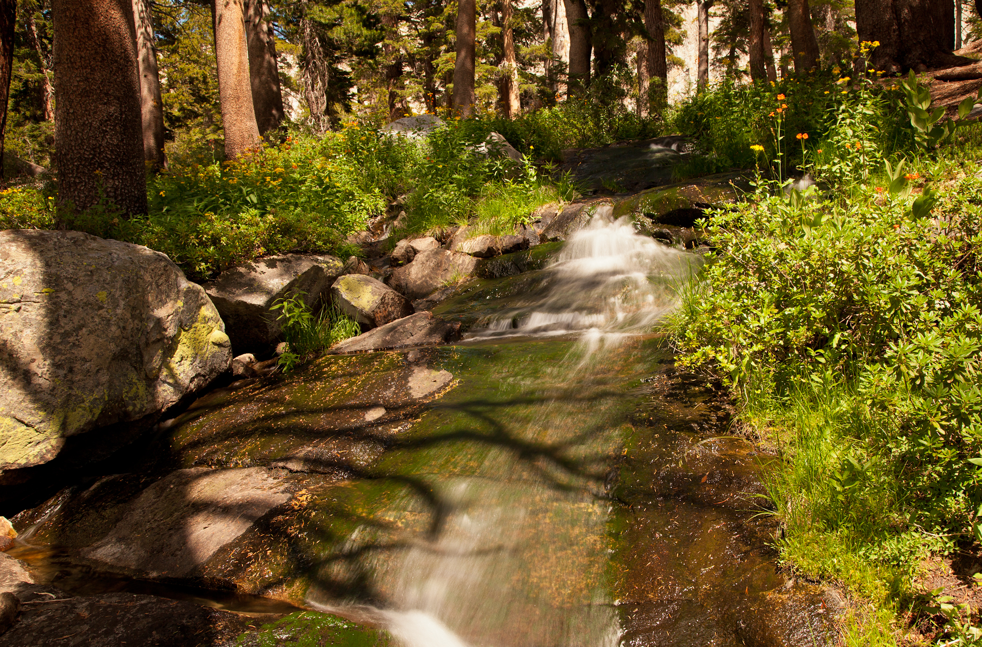 During our visit in August, a stream flowing out of the third lake was surrounded by a brilliant wildflower display.
