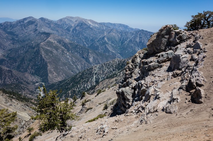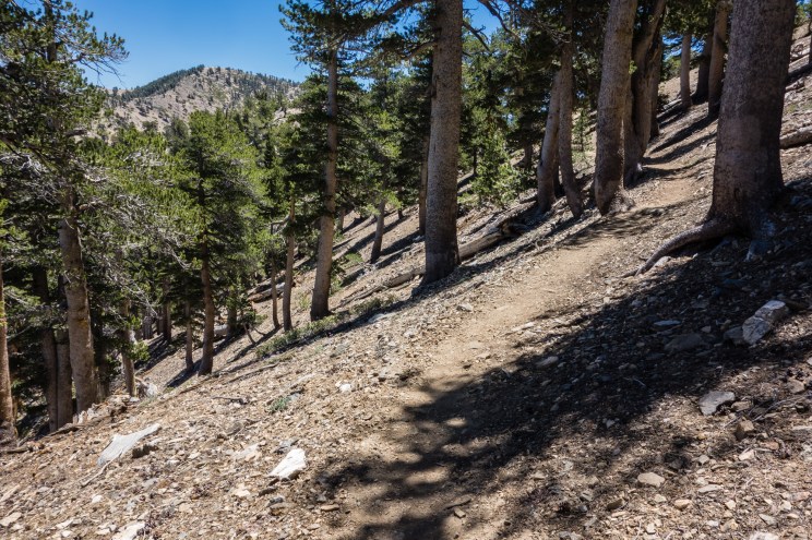 The final stretch of trail to the summit is a series of switchbacks on a barren hill overlooking the Mojave desert. It’s a fairly steep stretch, and at an elevation over 9,000 feet after 4 miles of hiking, your legs will probably be burning.