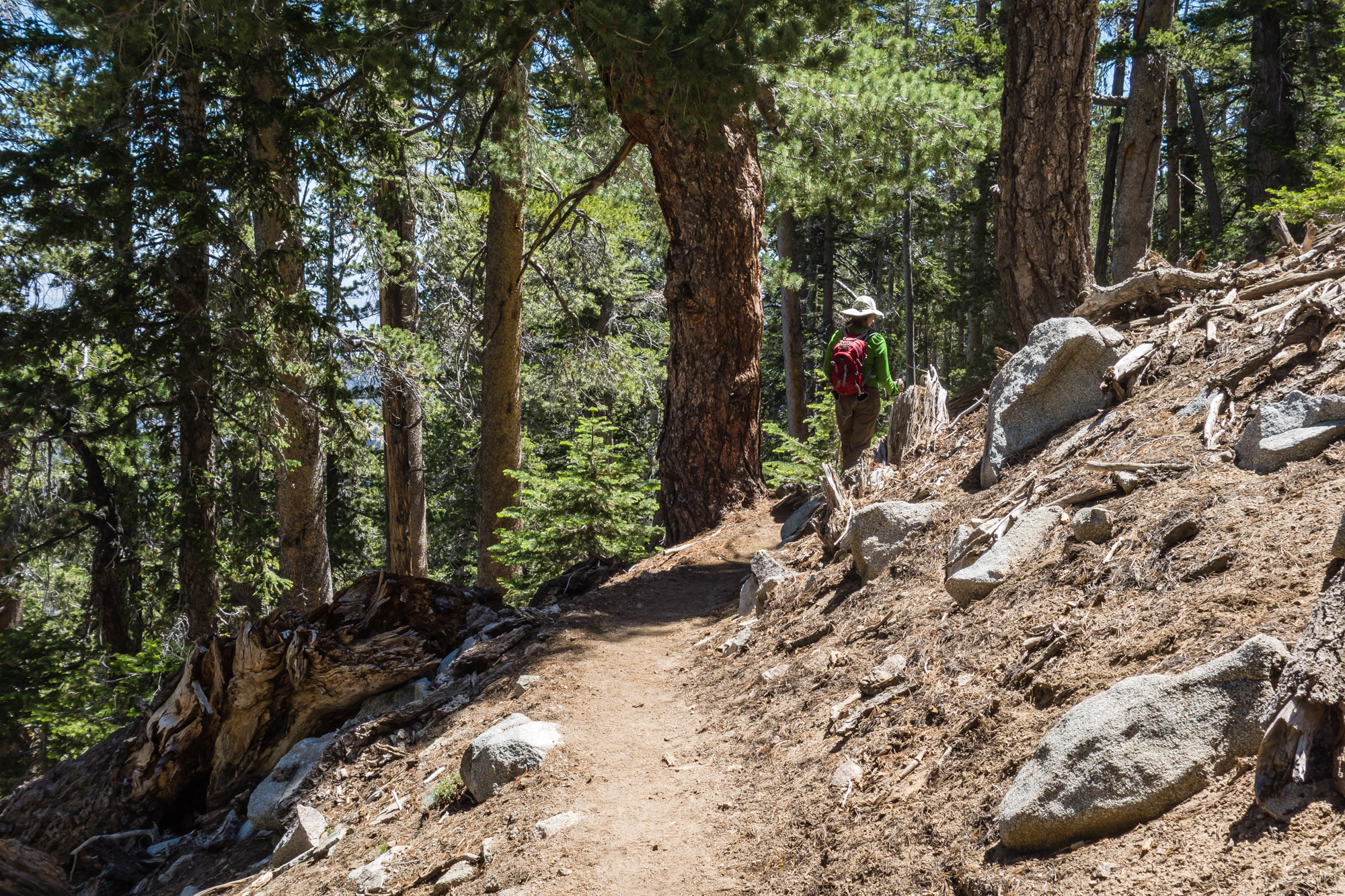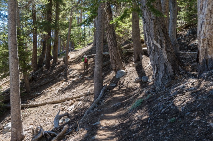 From here, the trail travels 1.8 miles up a thousand feet of elevation to the PCT, travelling through a pristine forest nearly the entire way. While this section is lacking in views, it is a very peaceful stretch of trail.