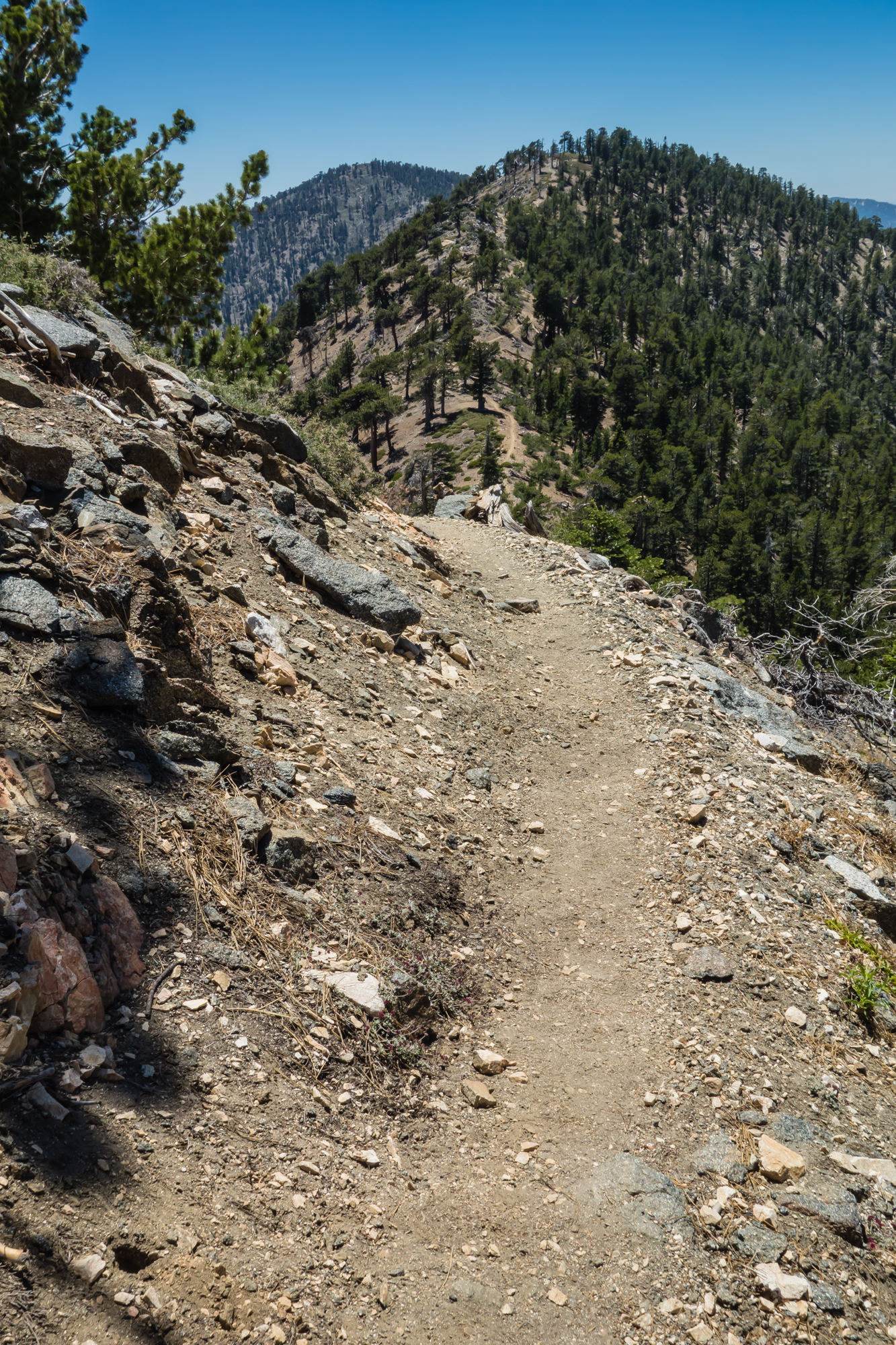 From the junction, Throop Peak is an easy detour if you are feeling ambitious. Either way, you’ll want to eventually head east on the PCT along the ridge towards Mount Burnham and Baden-Powell. The trail at this point dips down a couple hundred feet to a saddle between Throop and Burnham, adding a bit of redundant elevation gain to the hike, but for the most part is smooth sailing along the crest.