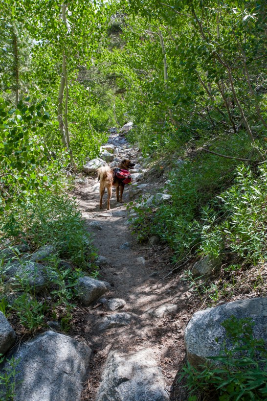 The route to the Wonder Lakes starts with the Lamarck Lakes trail. It begins as a flat walk through a lush aspen grove and then ascends gently up through a pine forest. This stretch is a piece of cake, and you might forget that you are in the steep Eastern Sierra for a moment.