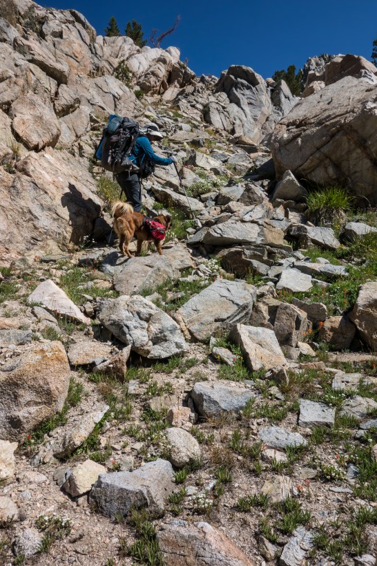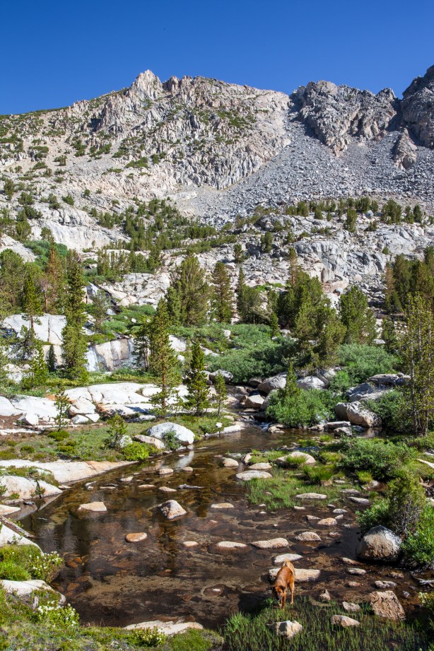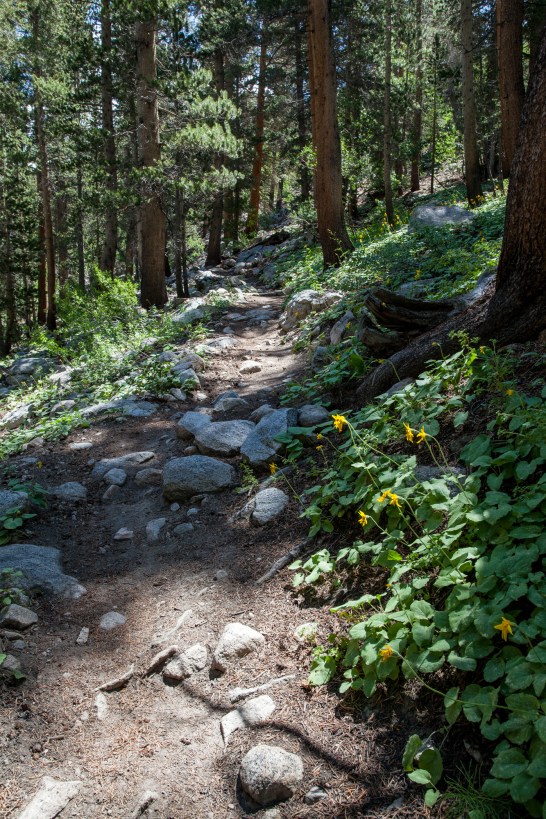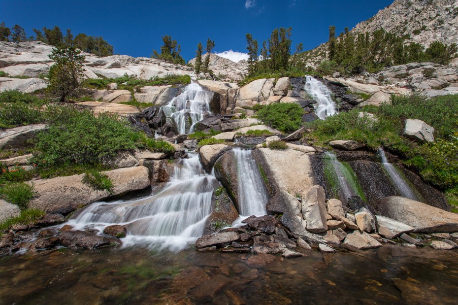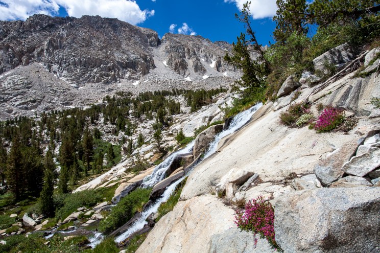 This area has it all: plenty of trees, wildflowers, grassy meadows alongside streams and lakes, flowing waterfalls, all kept together in a carved granite bowl. The only thing it is lacking is people and evidence of them. We hardly saw any established campsites in the area. It felt much more pristine than a convenient location like this normally does. Editor’s Note: If you visit, please keep it that way! The couple bits of trash we saw were packed out.