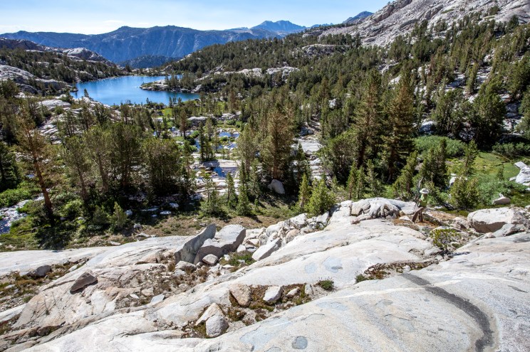 Above the third Wonder Lake, the trees thin out a bit and offtrail travel becomes simpler. Just hike up the granite wherever looks best.