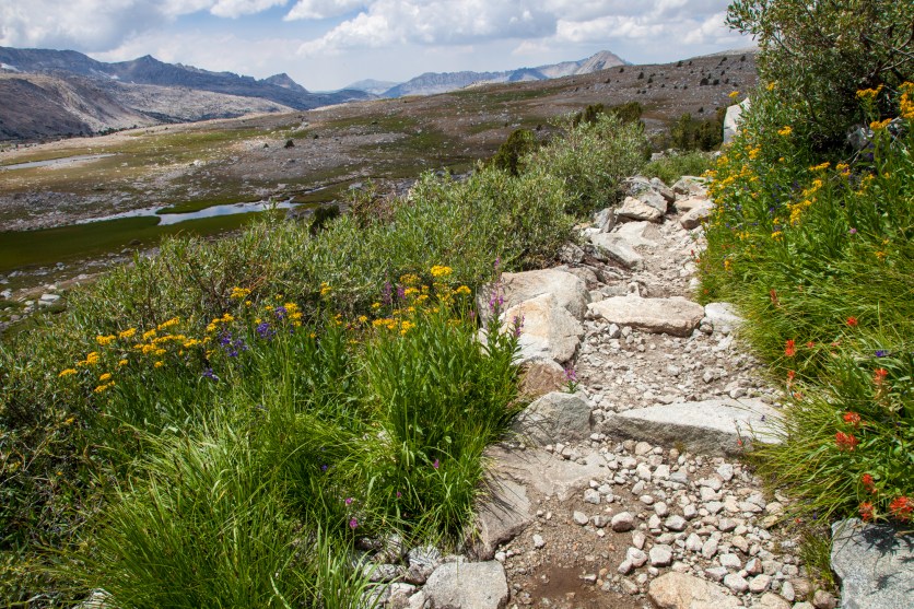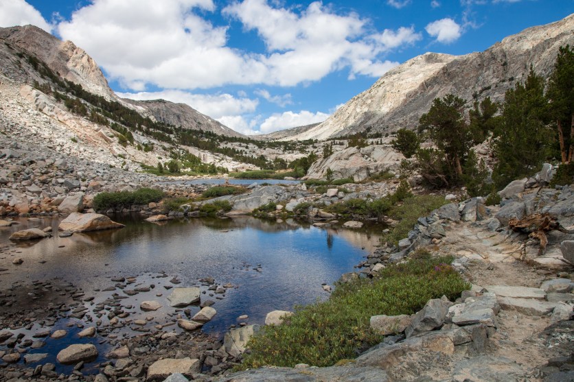 So, with dry gear, full bellies, and renewed spirits we returned to the trail. We were back at the North Lake trailhead where we had been only a few weeks previously for our trip to the Wonder Lakes. This time, we were heading up the Piute Pass trail. The only time I’d ever hiked this trail was a day hike to the pass with Riss 5 years ago, so I was very excited to return to it and explore the west side of the pass.