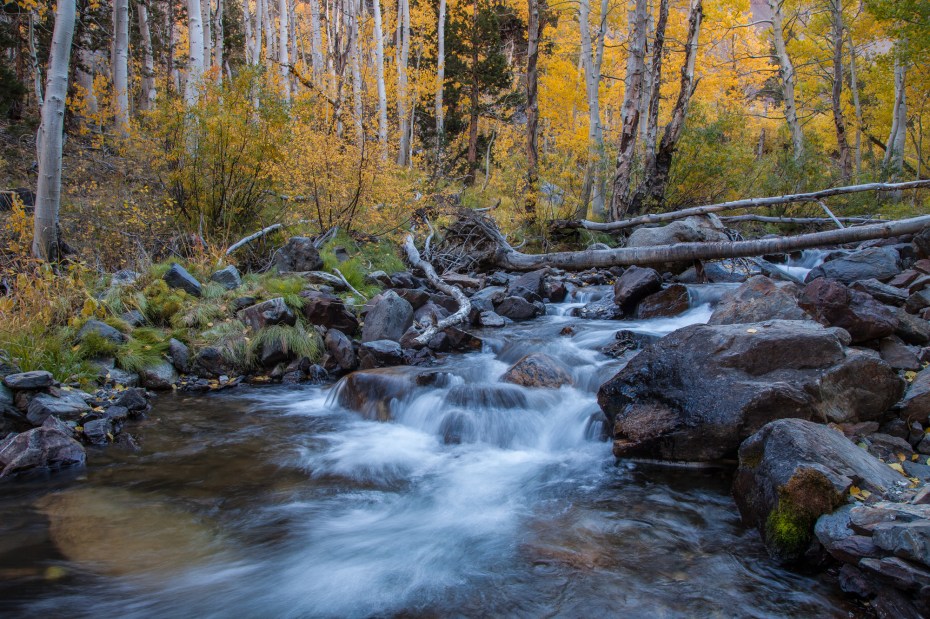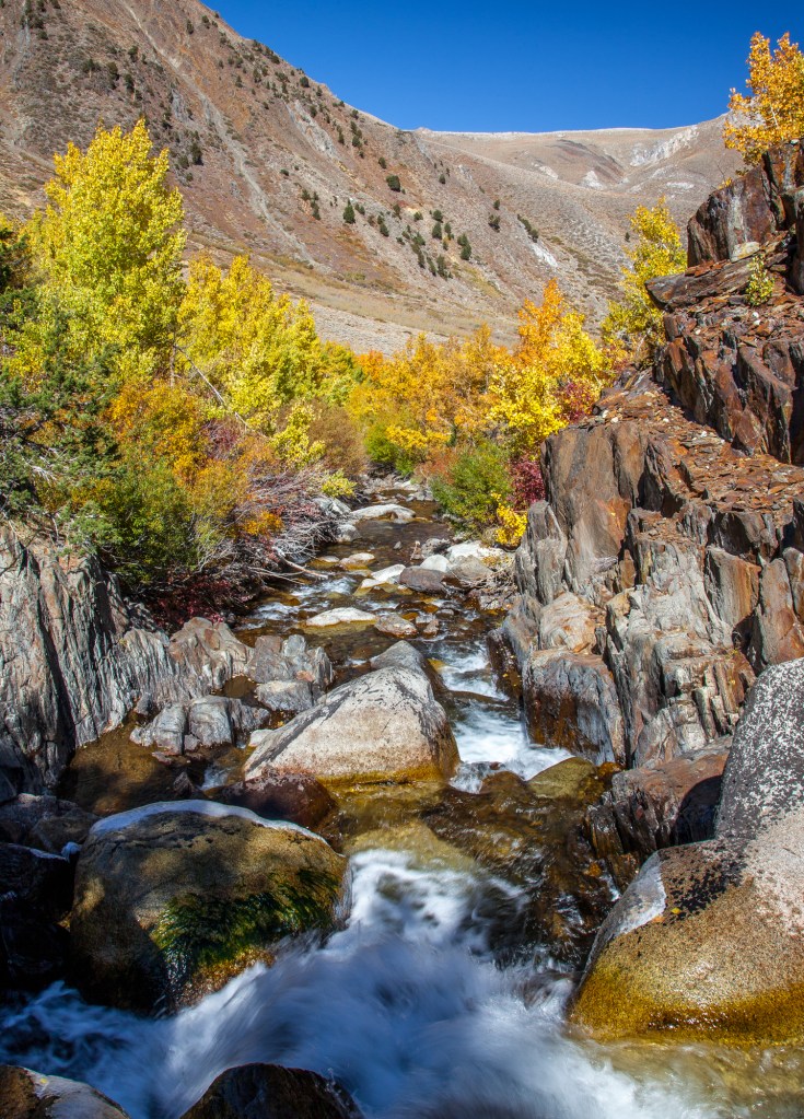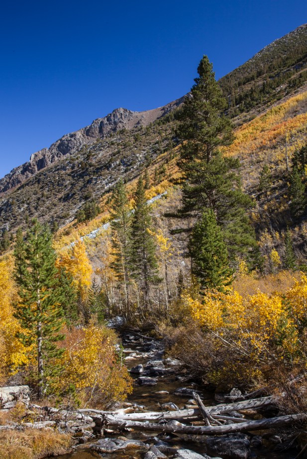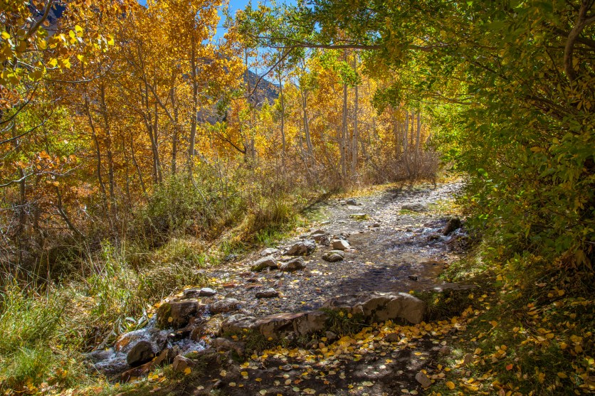 Mcgee Creek is one of our favorite spots in the Eastern Sierra for fall color. Most people avoid the area because the best views require you to hike and explore a bit. With Callie in tow, that is a requirement for us, so Mcgee Creek is a perfect fit.