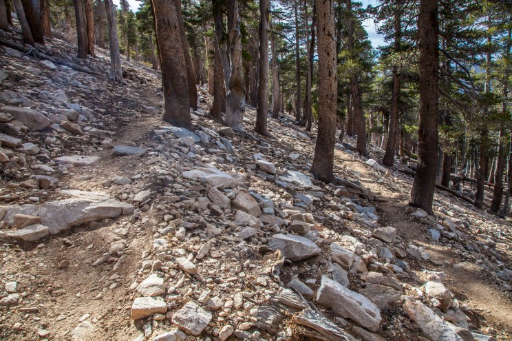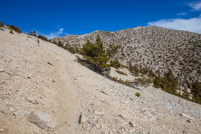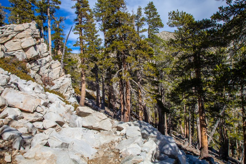 That leads me to my chief complaint about this trail. The views don’t change very much considering the distance and elevation that the trail covers. Trees are constantly flanking the trail, which is useful for sun protection but doesn’t help hikers see much outside of the tunnel they are in. Additionally, the topography of the area means that most of the trail is in side canyons with limited sight lines for the majority of the hike. It is not until the last 1500 feet that things open up as you would expect them to on Socal’s biggest peak.