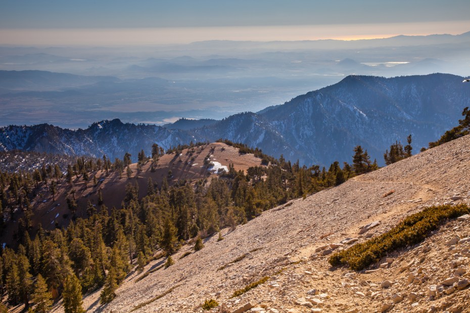 We didn’t linger at the summit for very long. It being fall, we were already running out of daylight so we scurried back down the trail. Starting out on the return, the view towards Los Angeles spanning all the way to the ocean is gorgeous. The city is so far away that it seems like another world, and yet we had just come from there a few hours earlier. The fact that we were 10,000 feet lower in elevation only 9 hours previously was pretty remarkable, and a testament to the fact that Los Angeles provides an under appreciated opportunity for adventure.