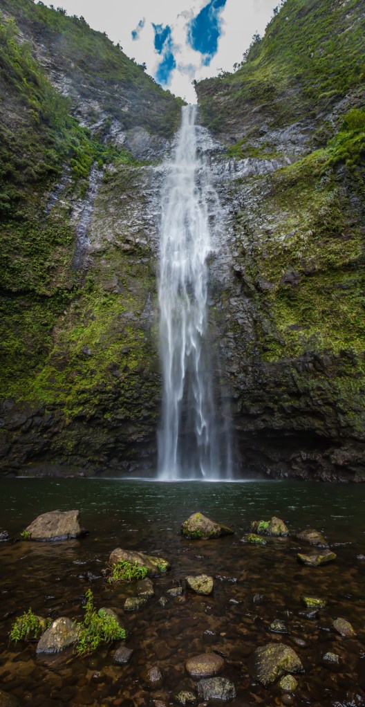 The effort feels well worth it once you reach the falls. Vertical cliffs surround you while the sound and mist of the waterfall pounding down from a couple hundred feet fill the area in between.