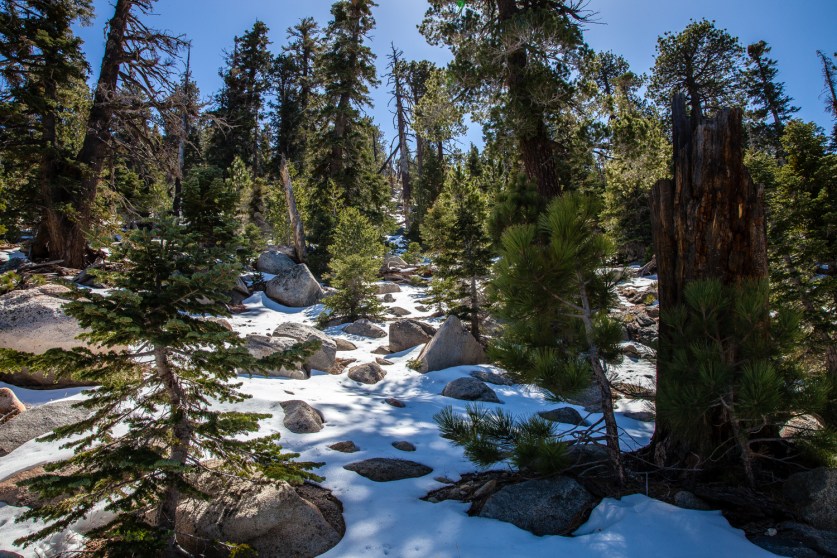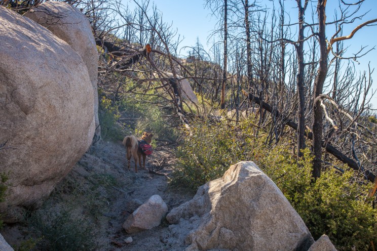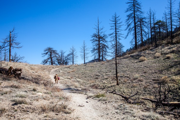 I had expected the first part of the trail to still be suffering from fire damage, but I underestimated the extent of the fire’s path. Almost the entire trail up until you reach the south face of Waterman suffers from varying degrees of fire damage, but it fortunately begins to become less severe. Since we were hiking on a hot afternoon, we sorely missed the shade the trees would have provided. This stretch is more less completely exposed to the sun.