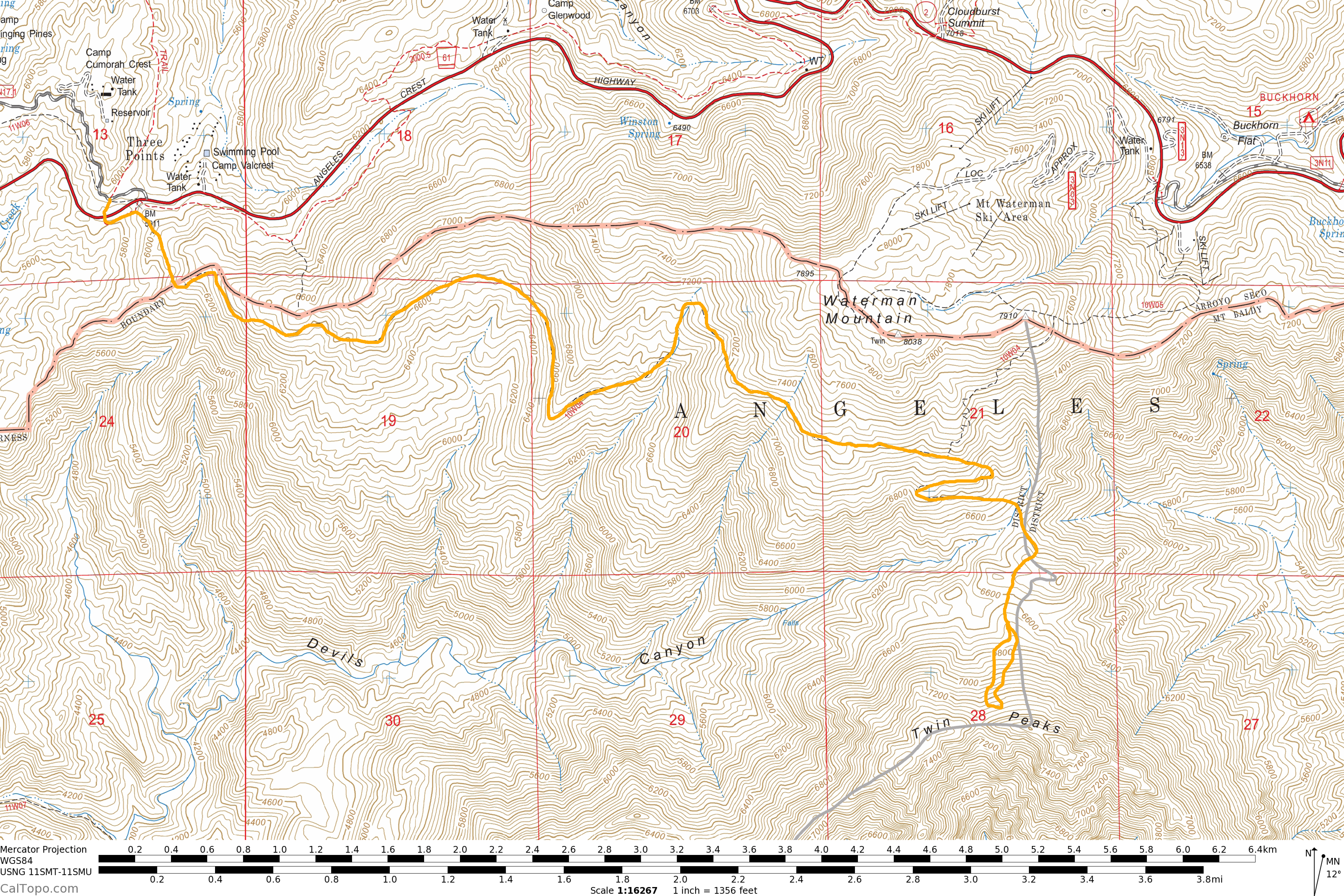 Twin Peaks is steep enough and tough enough without the snow! Good choice turning back. The first time I hiked this I didn’t realize there was a parking lot for three points off Sulfur Springs road. I made a similar mistake last Sunday thinking I could go further up Angeles Crest while not realizing there was still snow. Ended up hiking the PCT from Cloudburst Summit.