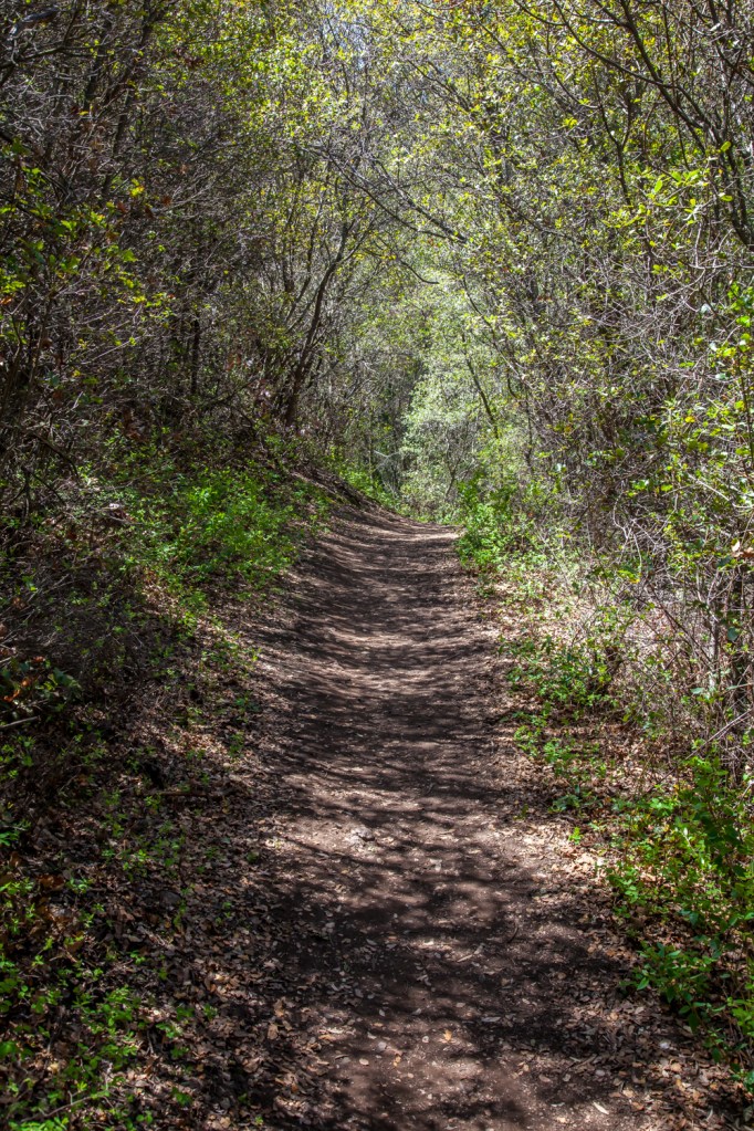 Most of this loop is pretty exposed to the sun. There aren’t really many notable trees in the Santa Monica Mountains. Instead, the landscape is covered in shrubs, and in this stretch they occasionally grow tall and thick enough to provide some shade, making the trail resemble a green tunnel.