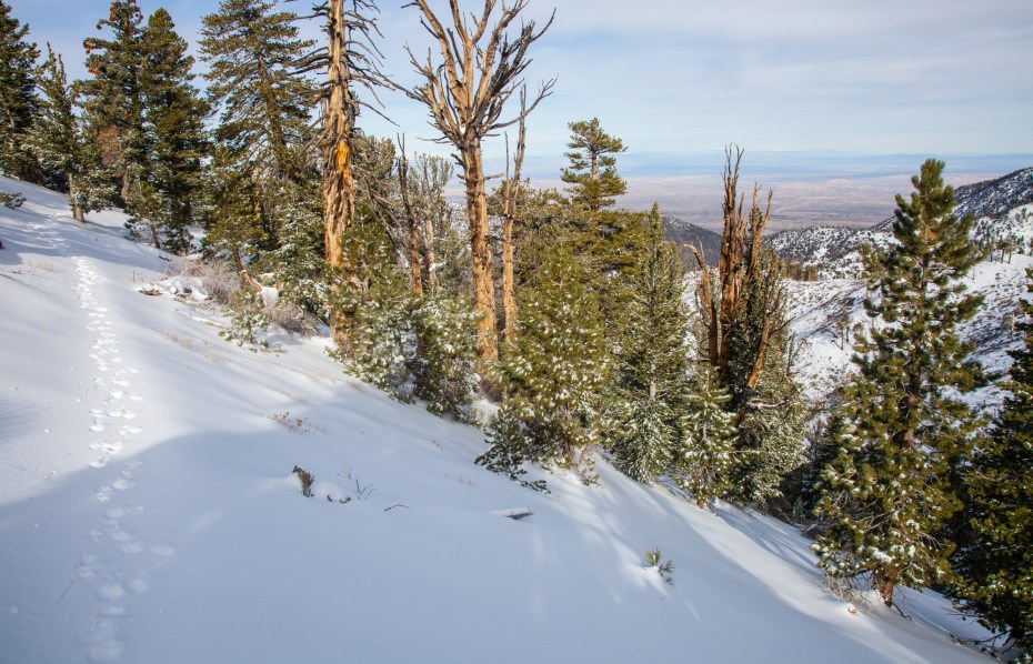 Occasionally views down into Antelope Valley open up through the forest, and in the distance almost every mountain range was capped with snow.