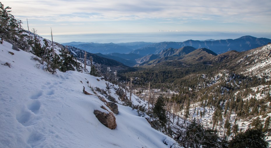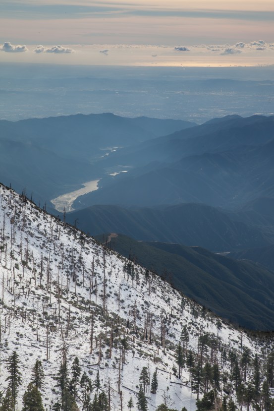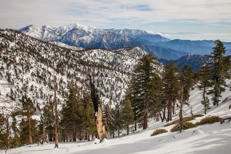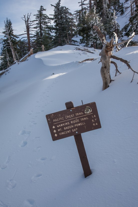 So, instead of going too much further up the PCT, we settled on going about a half mile up to Mount Hawkins, which would be our high point for the day. From the summit, we got our first glimpse into the snow covered eastern side of the San Gabriels. Our vantage allowed us to see most all of the highest peaks in the range in a clear line across.