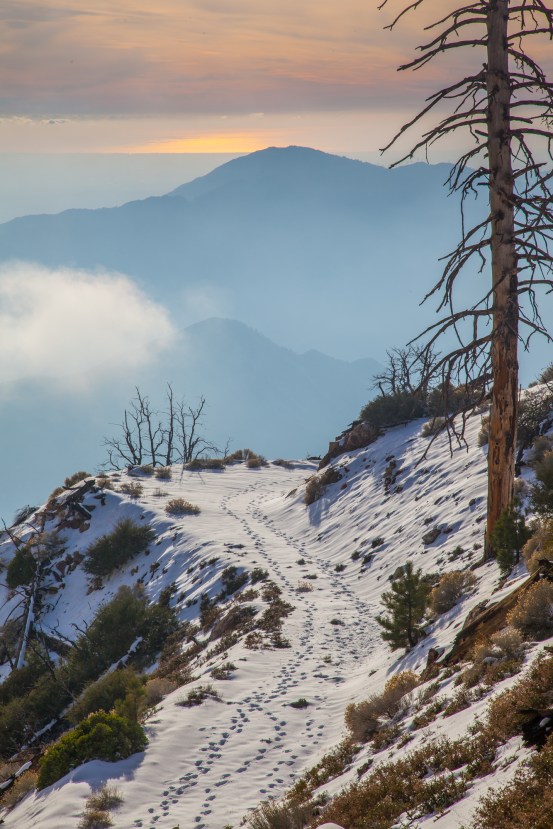 It was the perfect excuse to get us out on the trail after a hiatus from hiking our local mountains. The arid landscape, parched from three years of drought, and persistent heat waves of summer had removed any desire to spend a day in the San Gabriel mountains. All it takes is one big snowstorm for that to change, and as luck would have it we got our first one of the season last weekend.