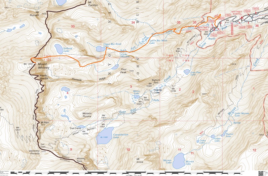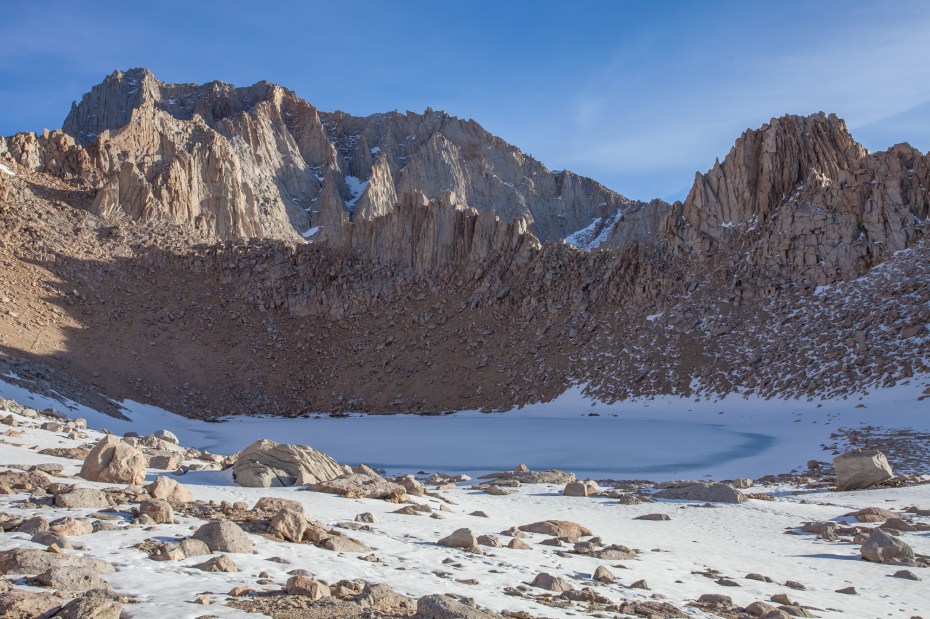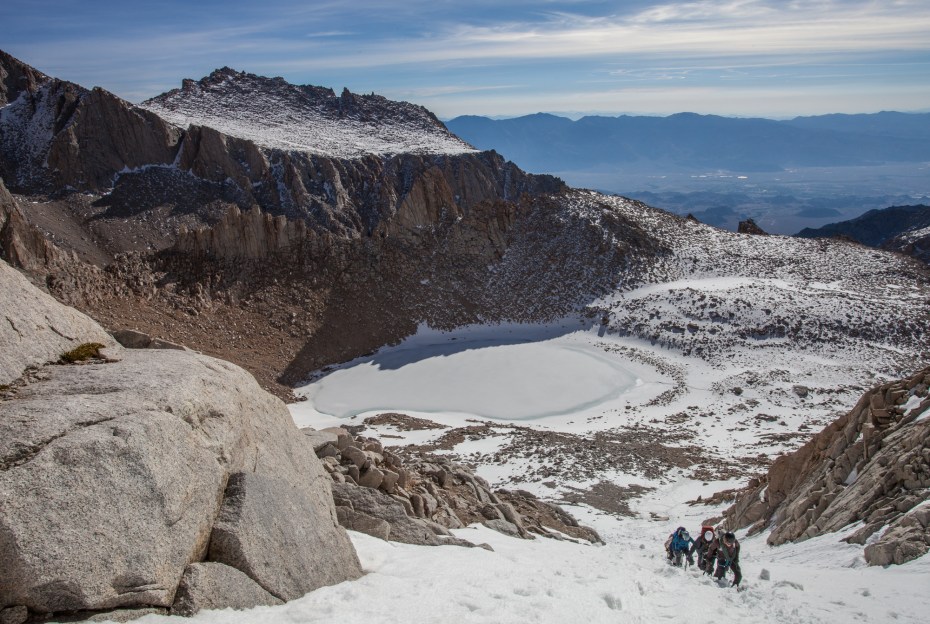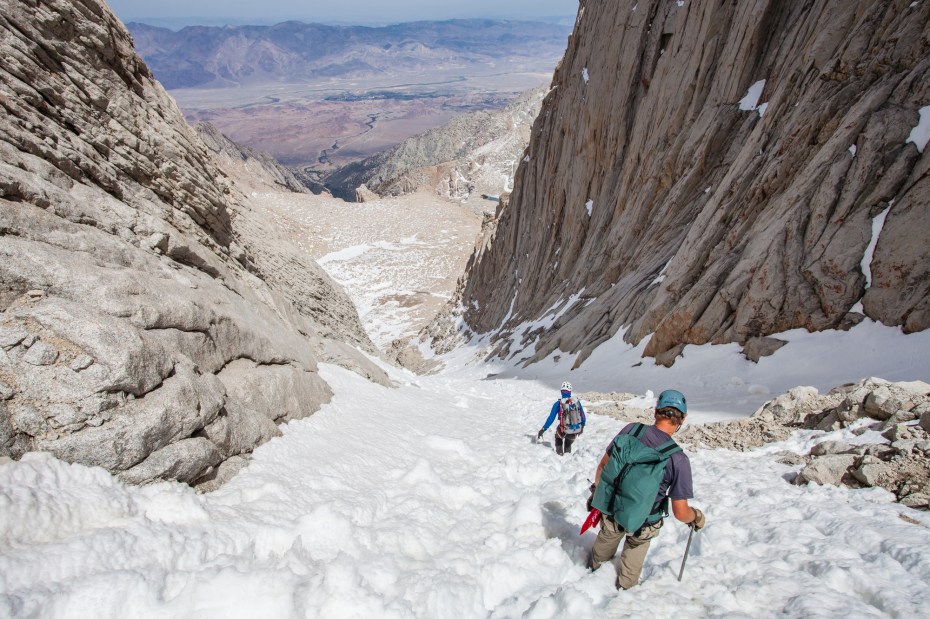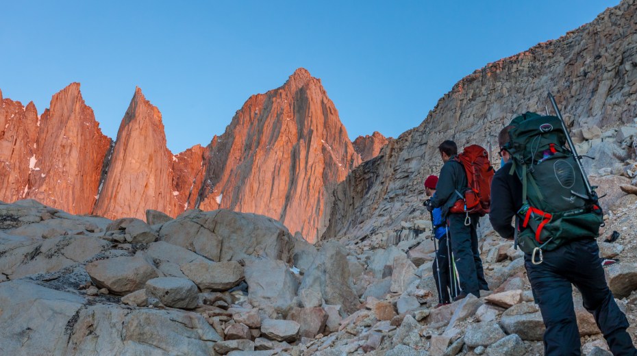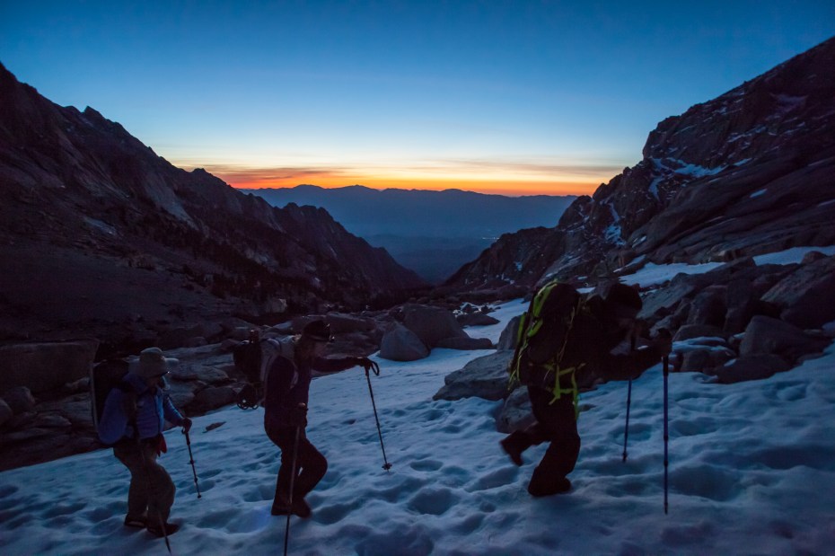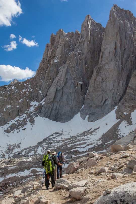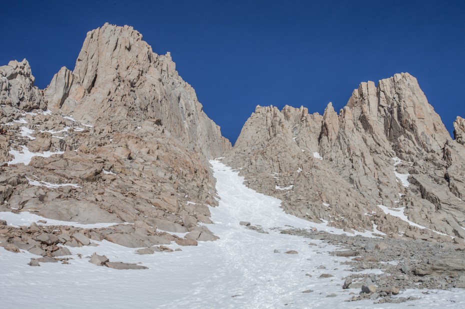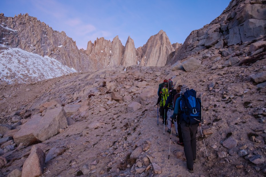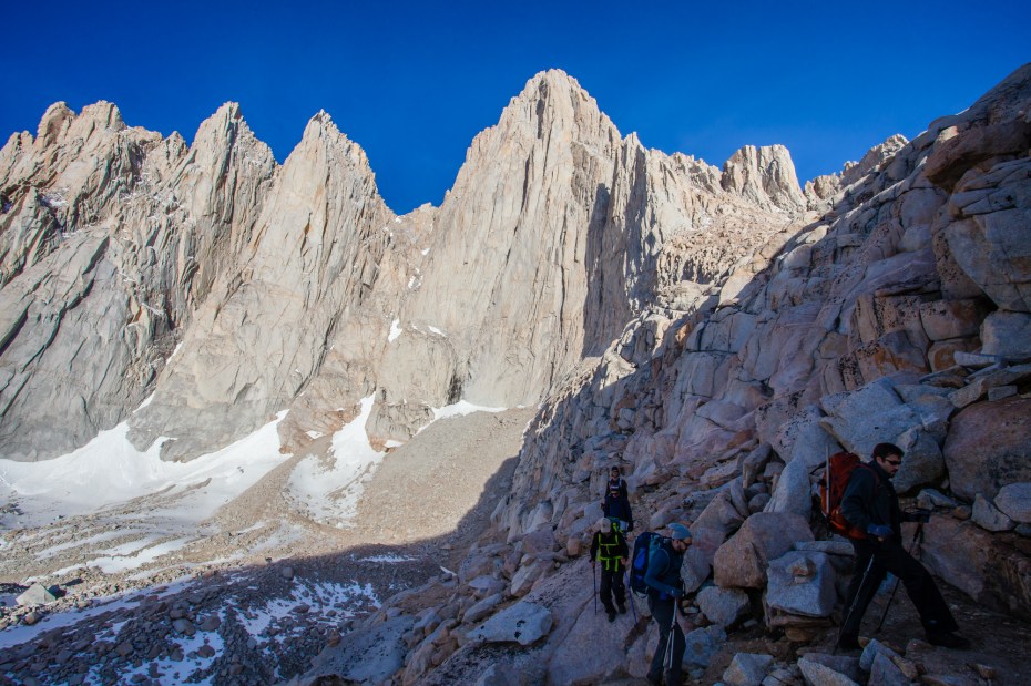 The Mount Whitney Mountaineers Route is a steep, straight shot from Whitney Portal to the mountain’s summit. It was pioneered by John Muir who referred to the traditional main trail as for “soft, succulent people.” His comparison is not that far off.