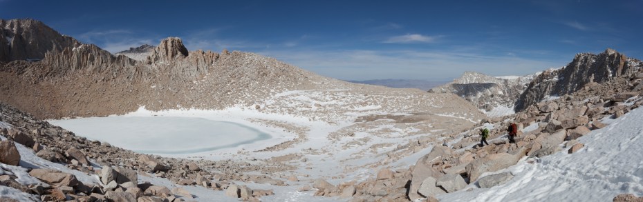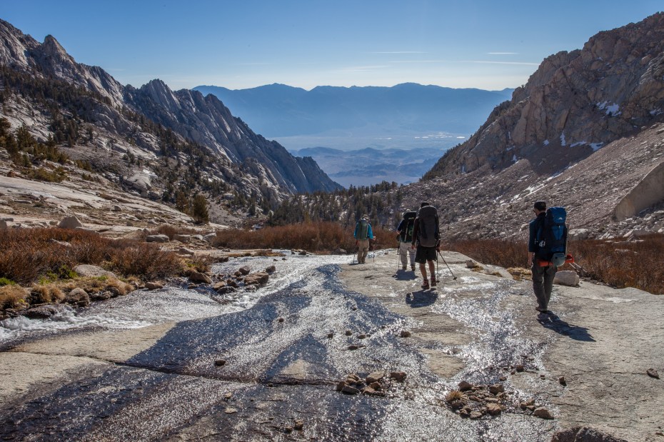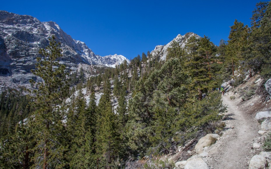 Back at Iceberg Lake, we removed our climbing equipment, and returned to hiking on solid ground for the rest of our descent. Compared to the terrain we had been facing all afternoon, the remaining stretch was like a walk in the park. Beautiful views of Whitney’s eastern flank providing a backdrop to the trail surely didn’t hurt.