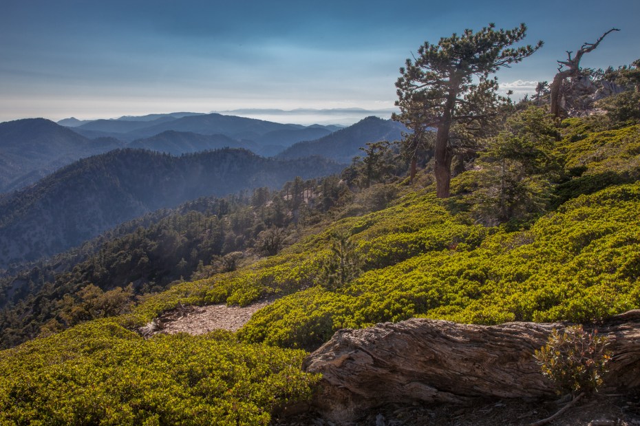 Travel here continues to be predominantly quite easy, and now the views from the trail feature an extraordinary vista down towards the Devil’s Punchbowl, Lancaster Valley, and the endless expanse of the Mojave Desert. The contrast between the two sides of the mountain provides an interesting element to the hike. One view showcases the emptiness of one of the most desolate areas left in the lower 48, while the other looms over the sprawl of one of the biggest cities in the world.