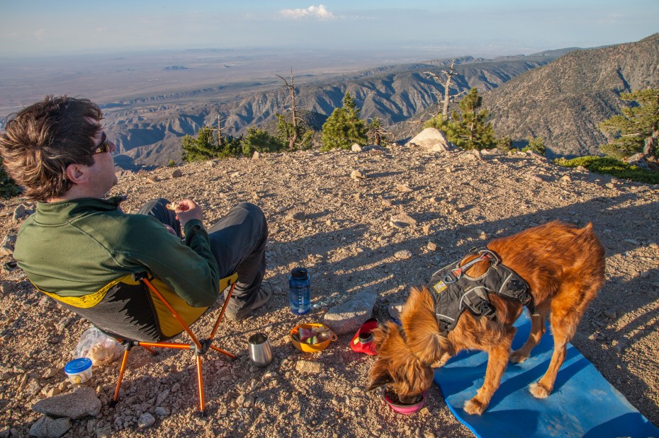 While I enjoyed the view and my spread of food, Callie proceeded to wolf down her Merrick Backcountry food that we brought up for her. As we mentioned a few weeks ago, Callie is an ambassador for the new Backcountry line of food. We haven’t had an opportunity to test it out in the trail, so this was our first chance and a worthy challenge. I have traditionally struggled to get Callie to eat any of her normal food while we are out on hikes. Sure, she’ll happily eat some of whatever food I have, but good luck getting her to eat a bowl of kibble in the middle of a long day hike. I’m not the only one who loses weight on backpacking trips either. She is a picky eater for a dog.