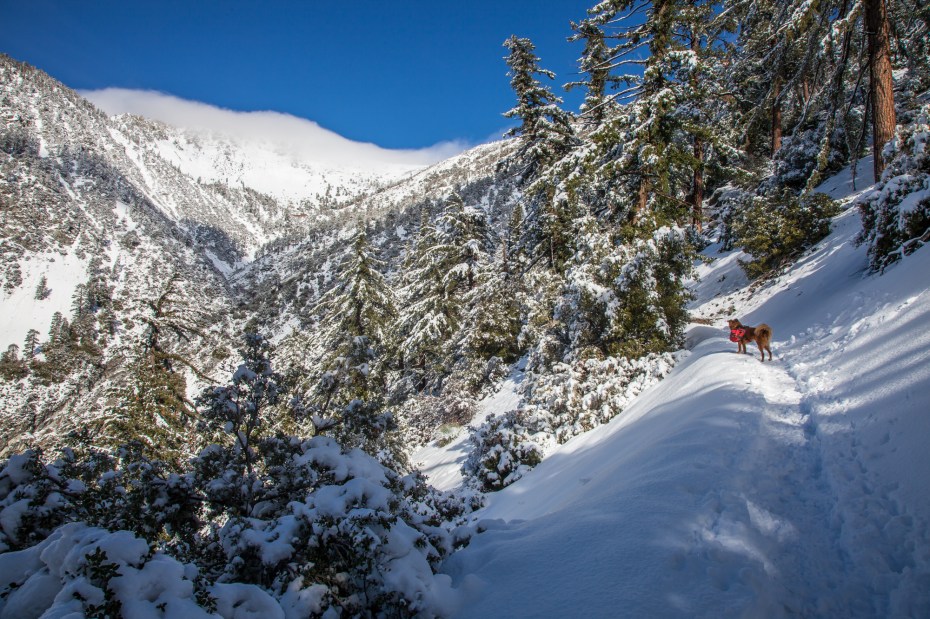 The Mount Baldy Ski Hut trail is one of the most scenic trails in the San Gabriel Mountains. After a snowstorm, it gets even better and provides a great opportunity for hikers to experience winter in Southern California.